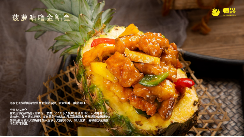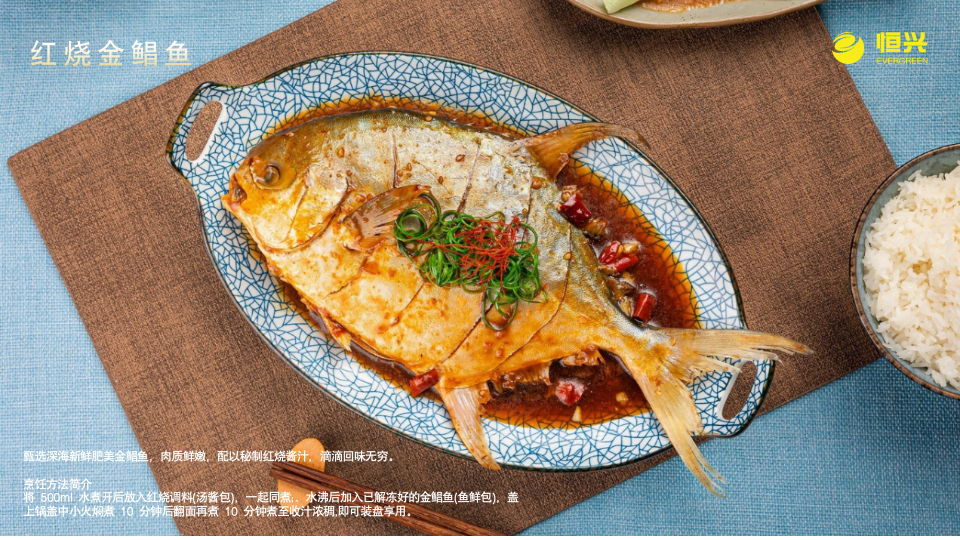金鲳鱼是销售市场的宠儿,不仅因为其富含DHA、EPA等不饱和脂肪酸,对促进大脑发育、改善心血管健康均有裨益,更重要的是,金鲳鱼的“百搭”属性可以适配各种烹饪风味。周剑熙介绍,恒兴集团作为湛江金鲳鱼产业的龙头企业,依托全产业链优势,开发了多款深受市场欢迎的金鲳鱼产品,如壹品海鲜煲、菠萝咕噜金鲳鱼、红烧金鲳鱼、清蒸一夜埕金鲳鱼等,从传统到创新,既满足了不同消费者的需求,也推动了金鲳鱼产业提质增效。